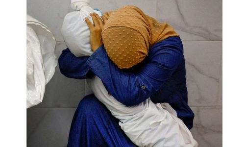 The picture taken by Reuters news agency’s Mohammed Salem shows Inas Abu Maamar cradling the body of five-yearold Saly, who was killed with her mother and sister when a missile hit their home in Khan Younis in October.