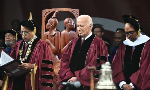 "This is one of the hardest, most complicated problems in the world. There's nothing easy about it," said Biden, who wore a maroon and black gown in the colors of the historically Black university. "I know it angers and frustrates many of you, including my family, but most of all, I know it breaks your heart.
