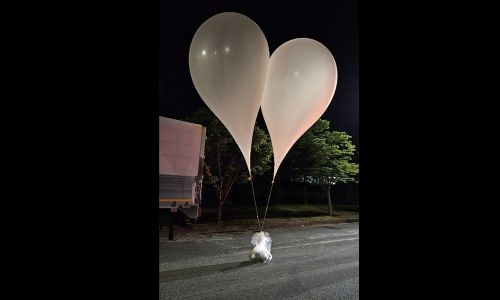 Photographs showing white balloons bearing garbage bags full of trash and what appeared to be excrement were shared widely by South Korean media, after the North warned this weekend it would shower border areas in “mounds of wastepaper and filth” to punish Seoul.